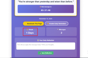 Come back every day for a brand-new motivational message, build your streak, and stay consistent in your self-improvement journey.